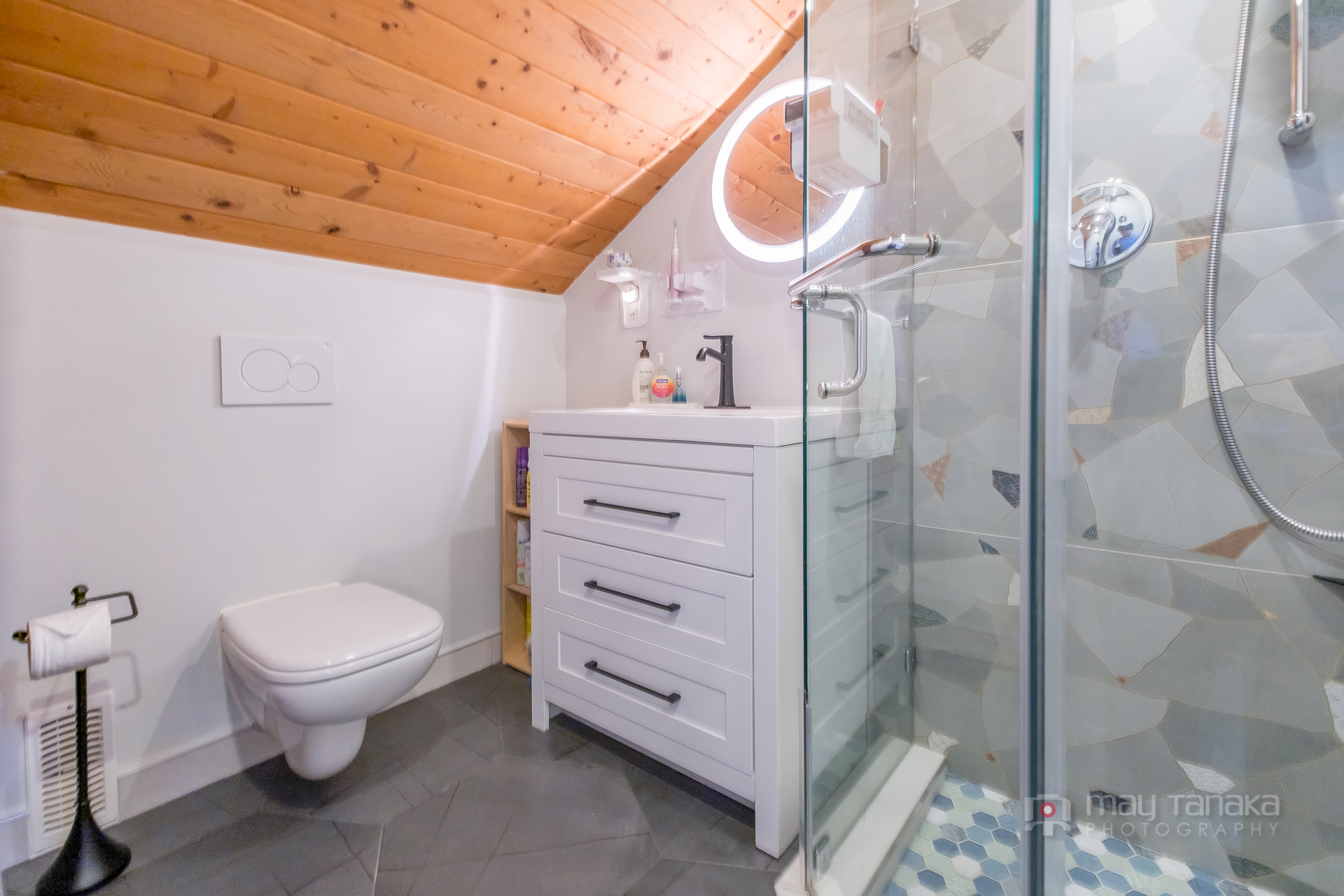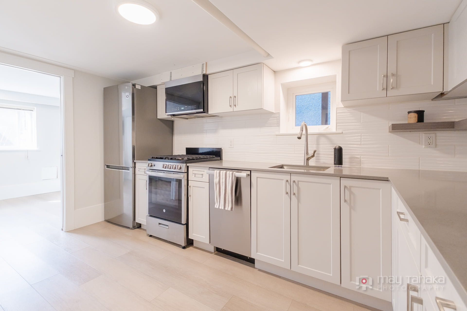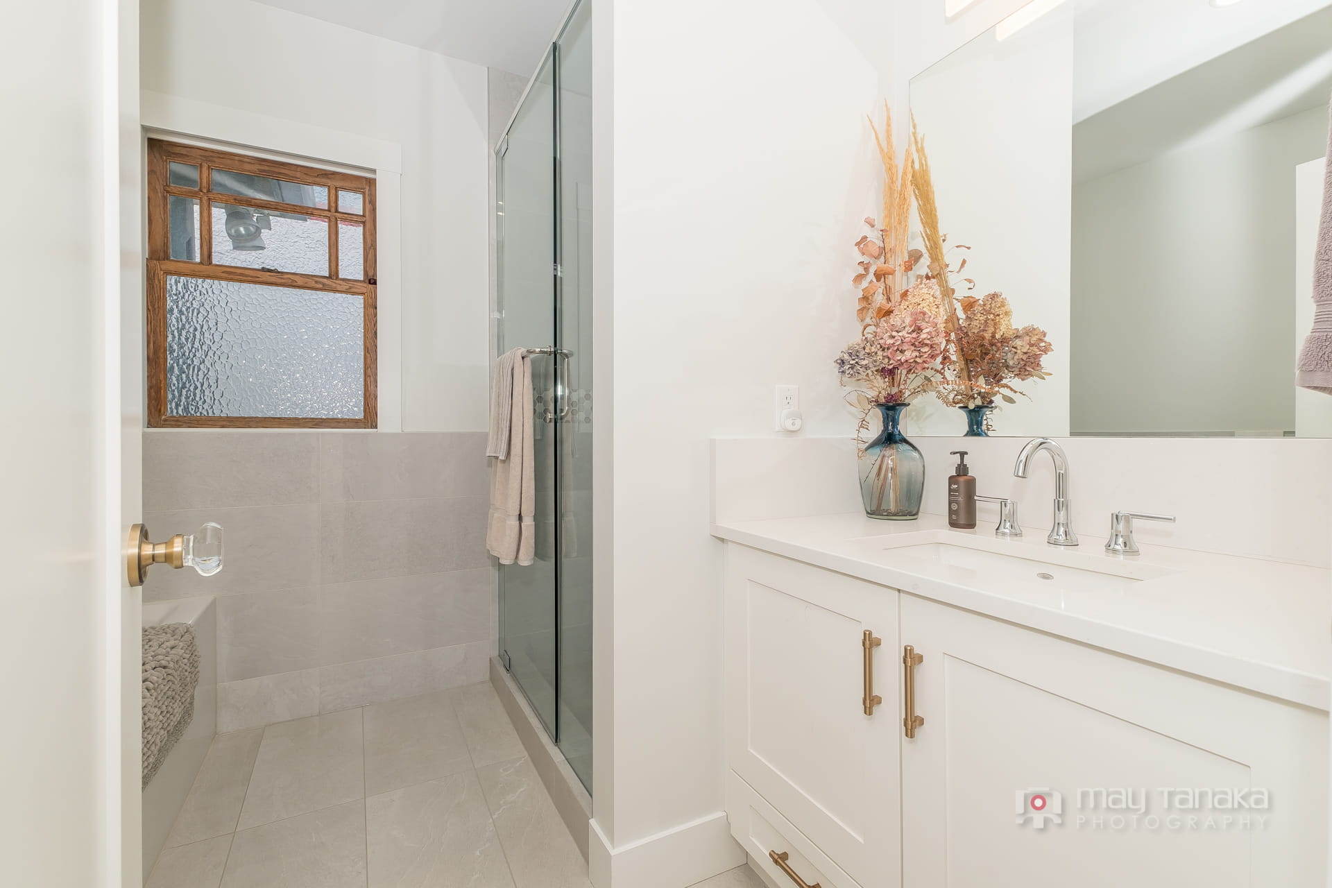 The main floor bathroom features a separate tub and shower with matching cabinets and hardware. The upper suite features a fully updated bath with a wall mounted toilet and custom tiles, vanity and LED mirror light. The 2 bed basement features a fully upgraded kitchen with a separate washer dryer.