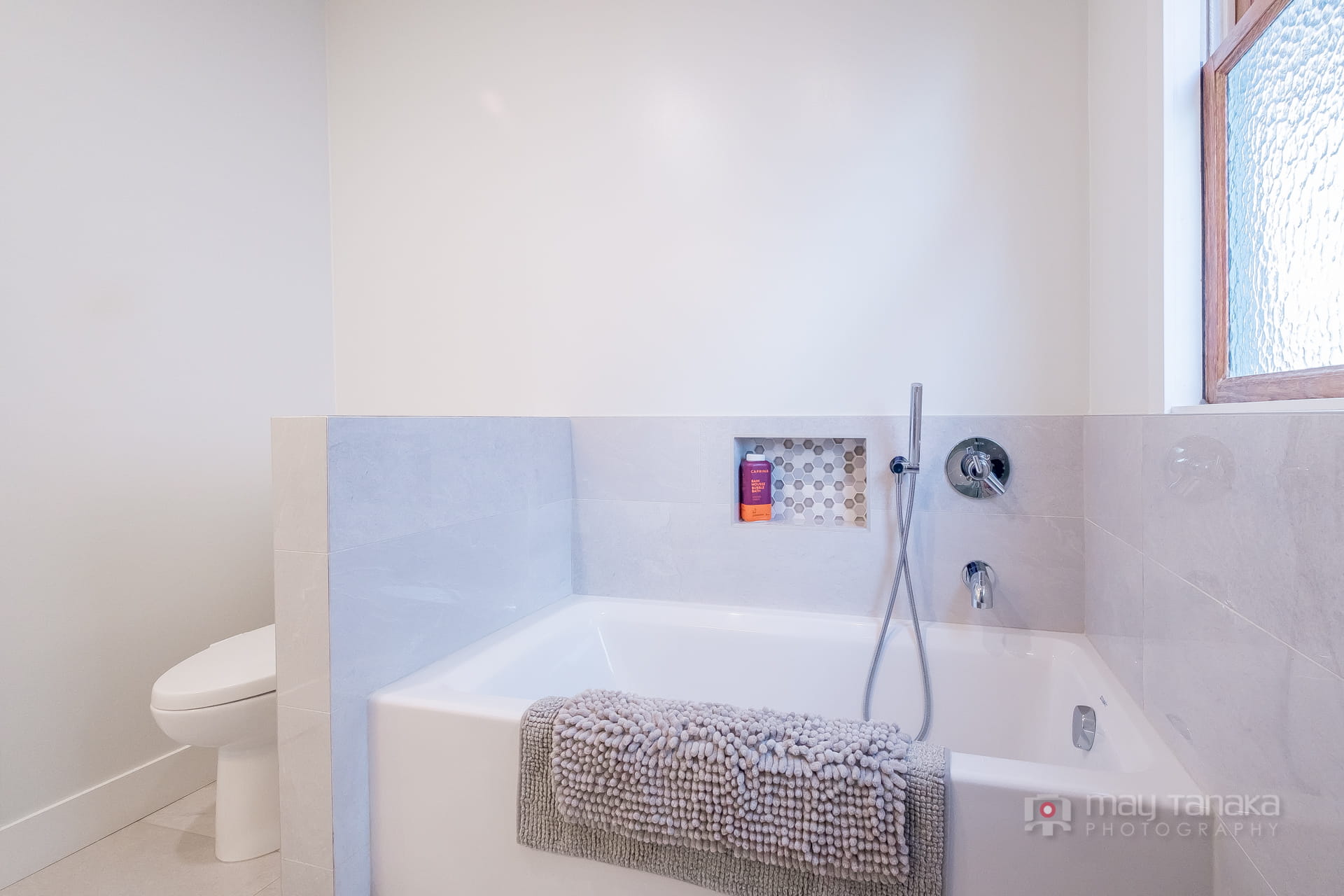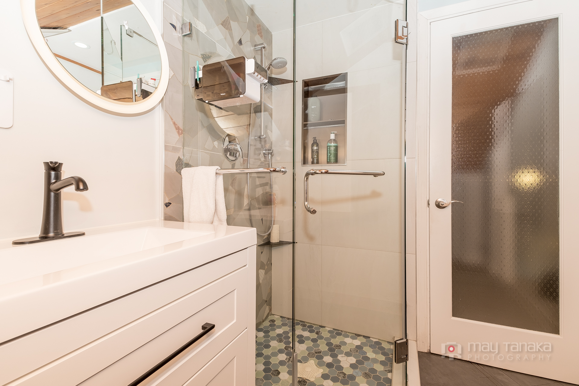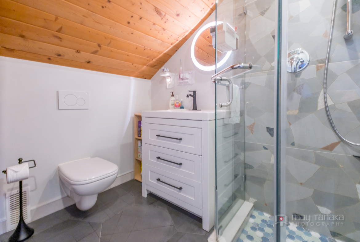 The main floor bathroom features a separate tub and shower with matching cabinets and hardware. The upper suite features a fully updated bath with a wall mounted toilet and custom tiles, vanity and LED mirror light. The 2 bed basement features a fully upgraded kitchen with a separate washer dryer.